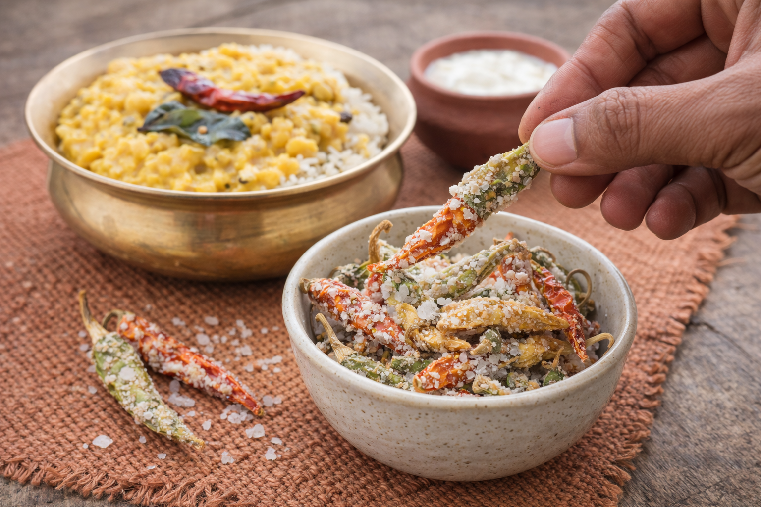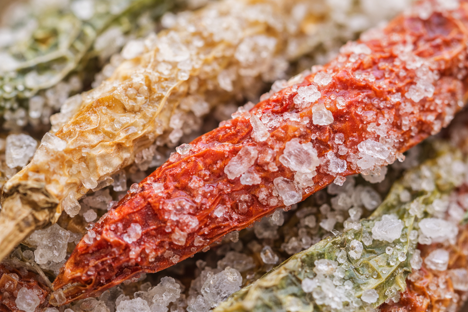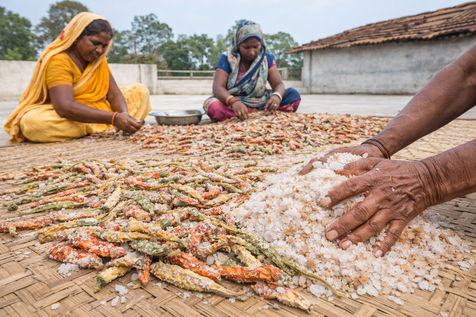 - સૂર્યમાં સૂકા લીલા મરચાં સિંધવ મીઠા સાથે